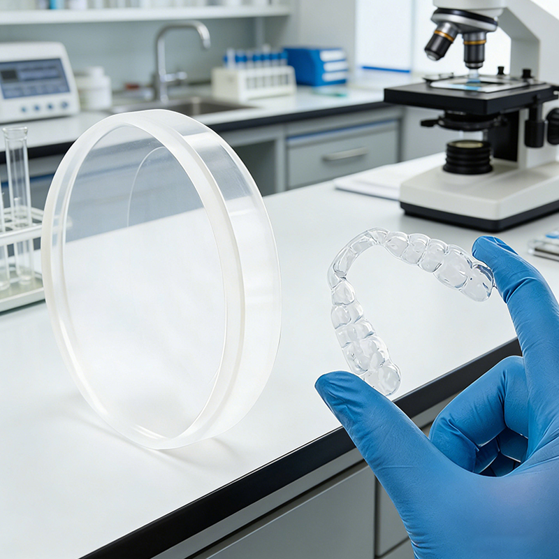 The Acetal PMMA Disc, with 90 MPa flexural strength, provides enhanced flexibility and resilience, making it ideal for softer splint applications.