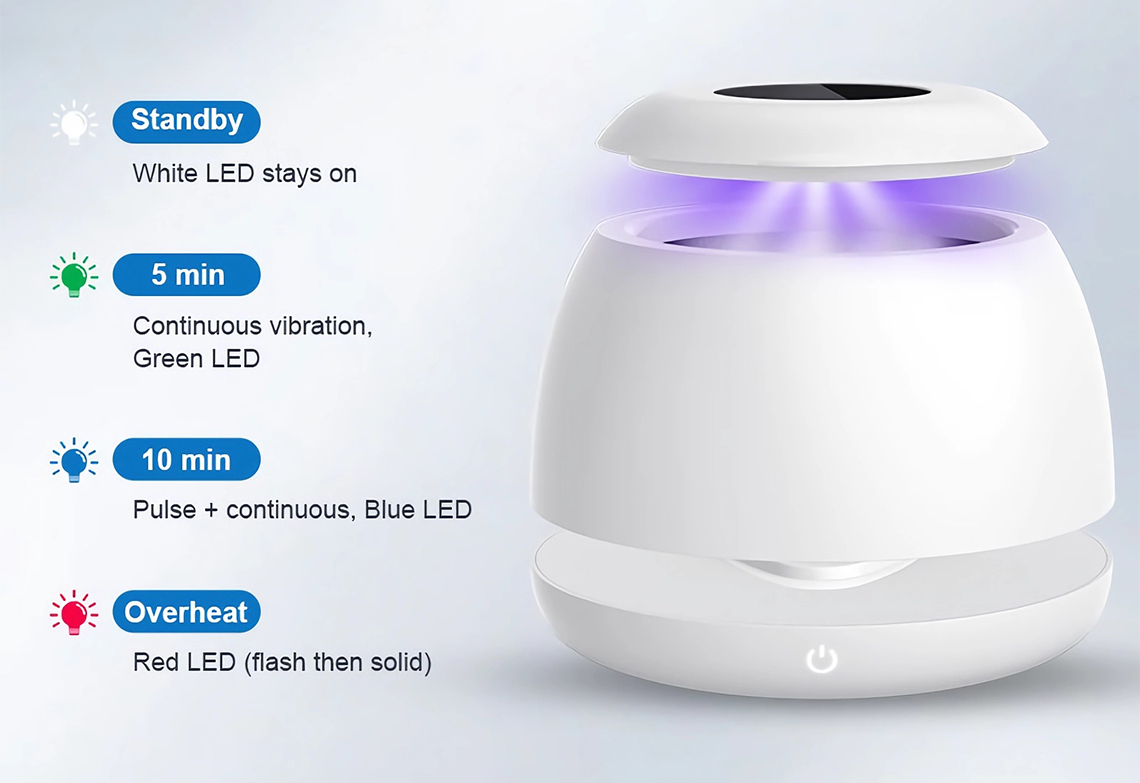 The SmileFind® Portable Model features a 0.2 L water tank, USB power supply, touch control, and a 300-second digital timer. Compact yet practical, it delivers an efficient, convenient, and safe cleaning experience for everyday use.